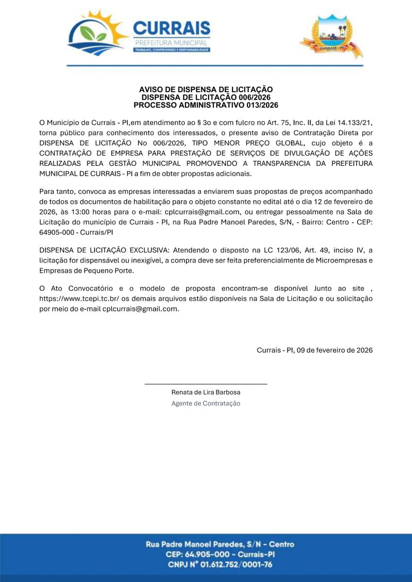 AVISO DE CONCORRÊNCIA Nº 002/2026