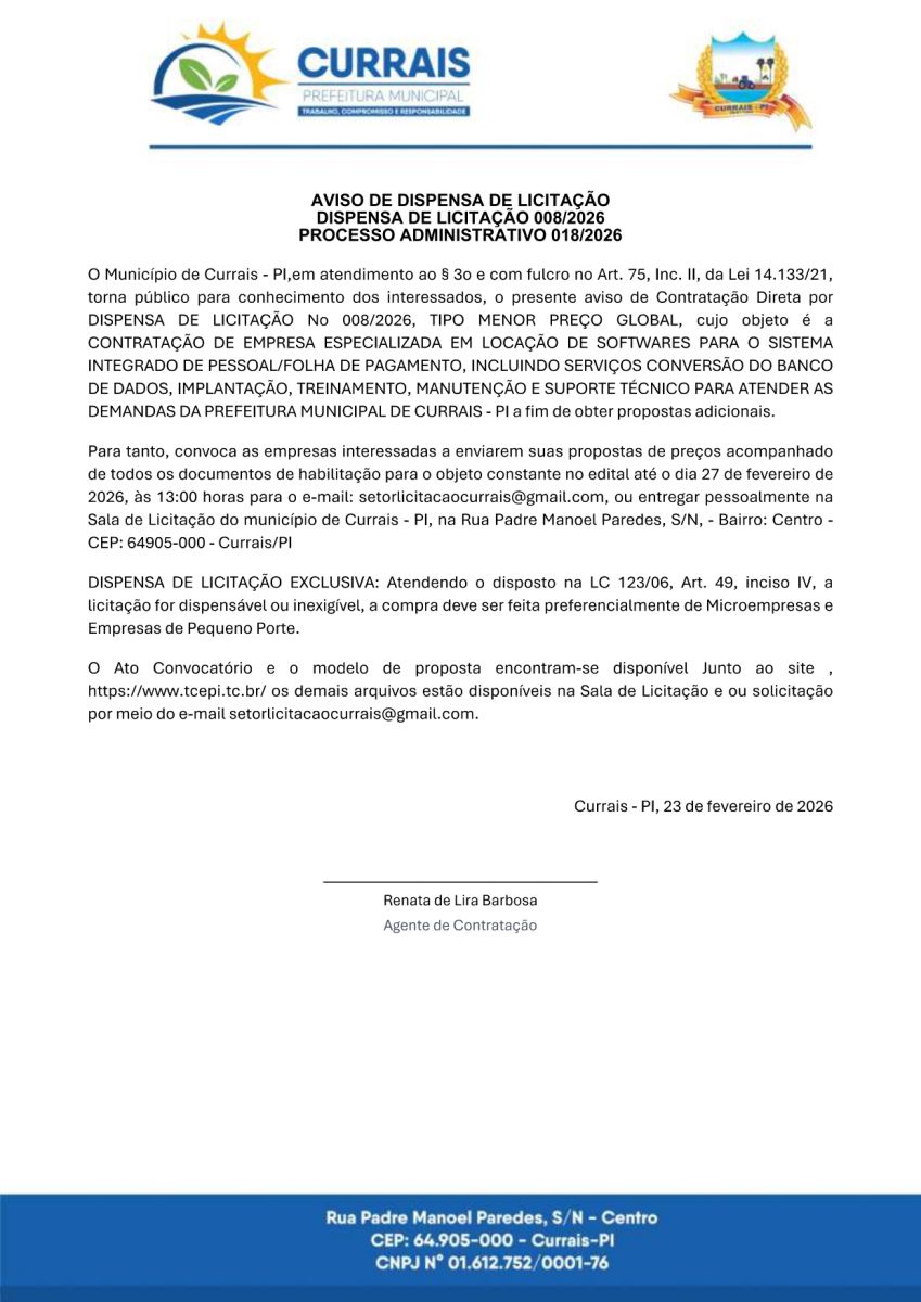 PREFEITURA MUNICIPAL DE CURRAIS