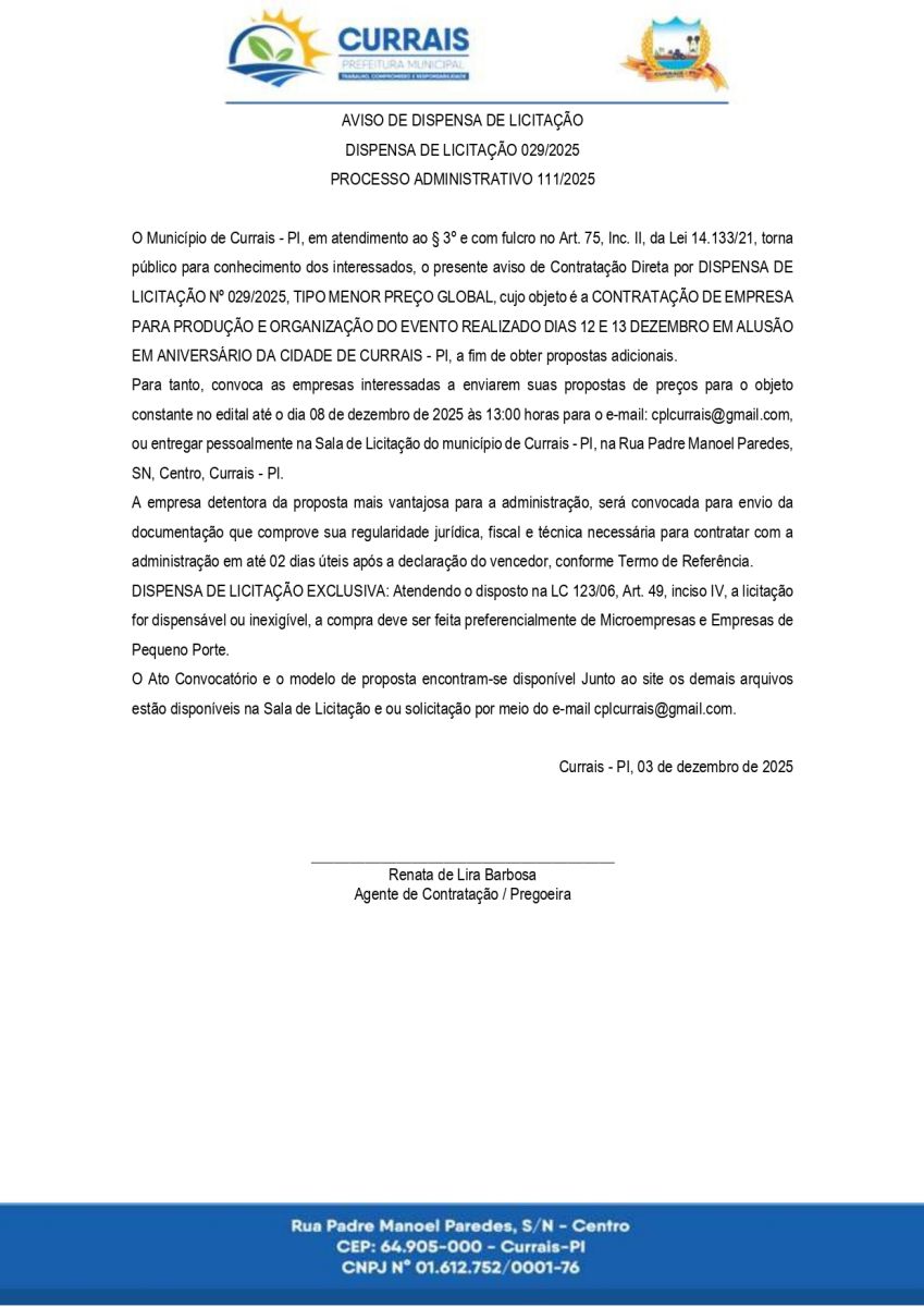 Prefeitura de Currais divulga programação oficial dos 31 anos de emancipação política