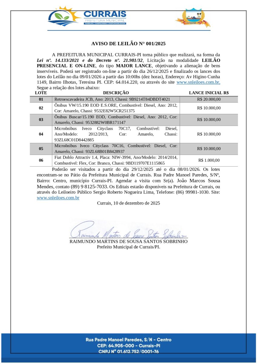 RUA PADRE MANOEL PAREDES, S/N, RUA PADRE MANOEL PAREDES, S/N - Bairro: CENTRO - CEP: 64905-000 - CURRAIS/PI
