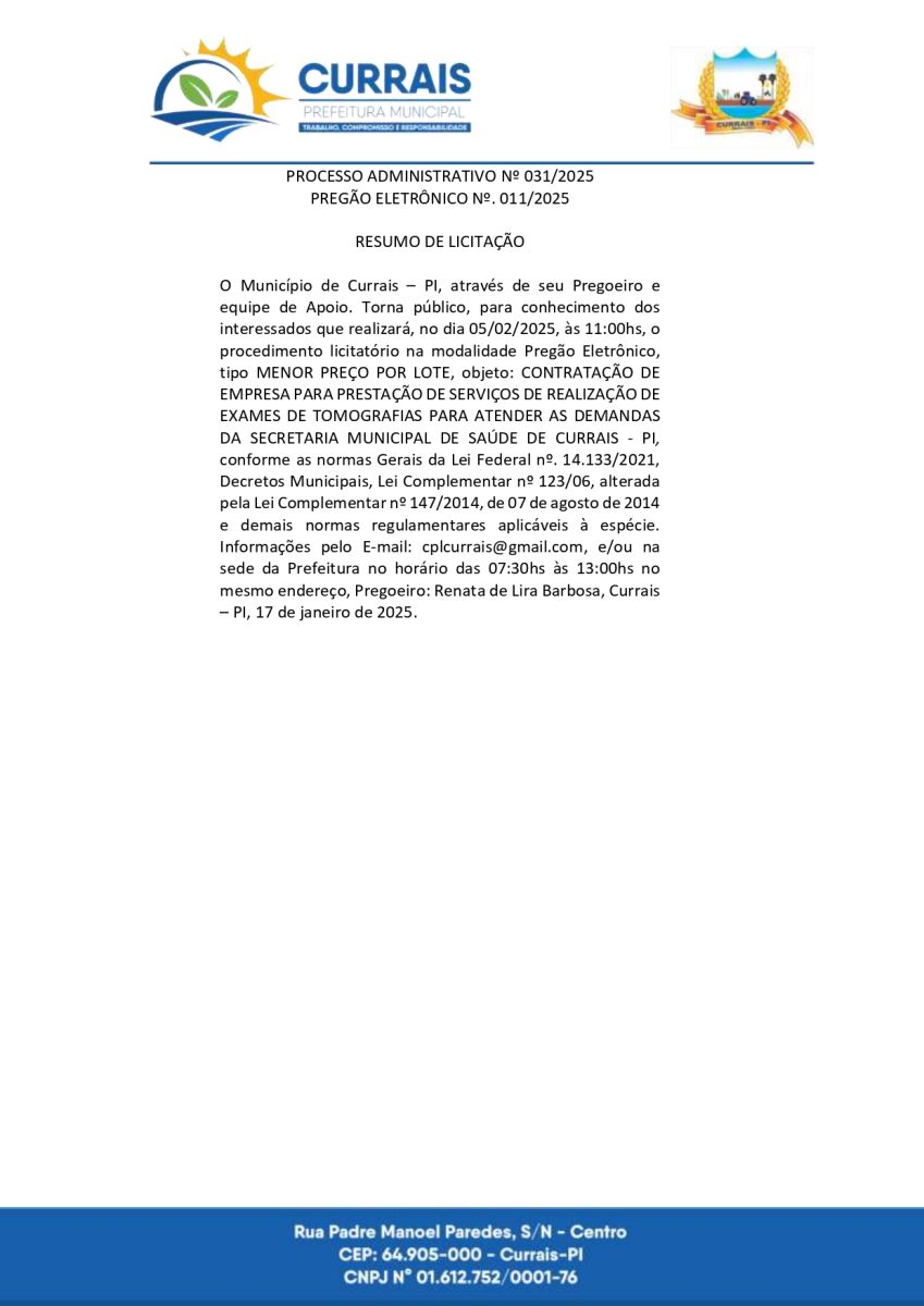 AVISO DE PREGÃO ELETRÔNICO N° 011/2025