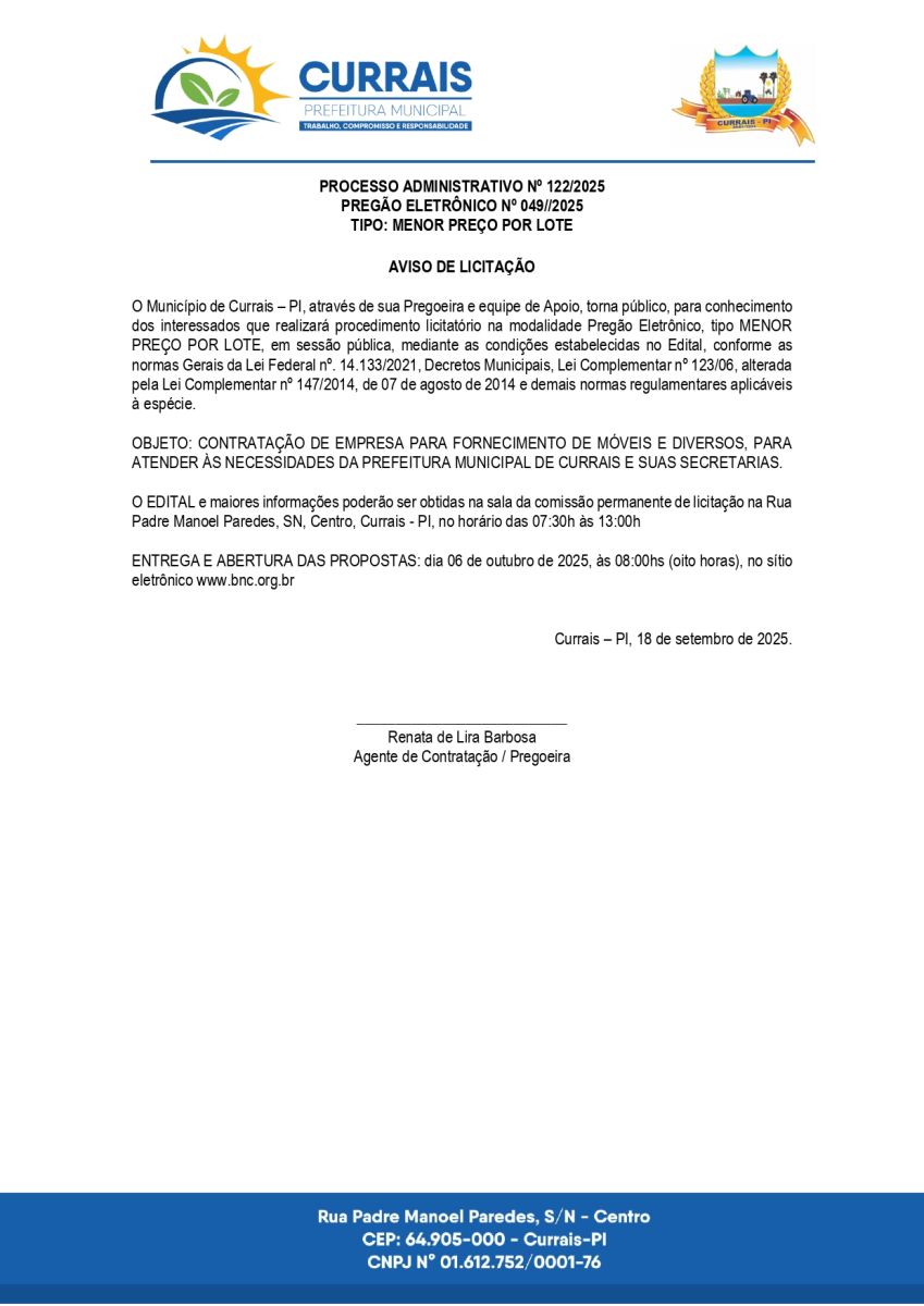 AVISO DE PREGÃO ELETRÔNICO N° 049/2025