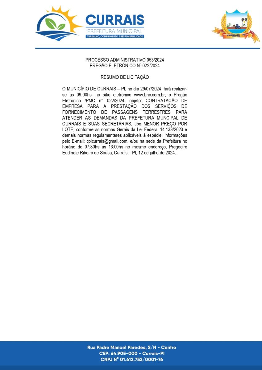 AVISO DE PREGÃO ELETRÔNICO Nº 022/2024