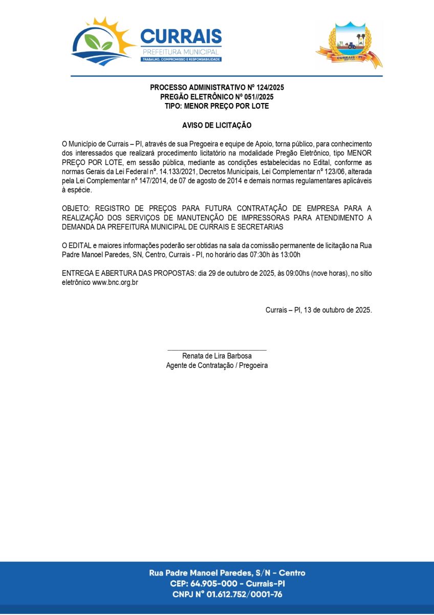 AVISO DE PREGÃO ELETRÔNICO Nº 051/2025